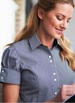 60% cotton/40% polyester. Cotton rich, flattering fit, contrast inner collar and cuff, double button fastening, short sleeve, matches Campania blouse and Mantova & Savona shirts.